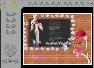 幻影200X系列是由勇敢科技工作室新近推出的一款優(yōu)秀的數(shù)字照片制作工具,使用圖像邊緣柔化技術(shù),可以把一幅或多幅圖像平滑的融合在一起。其可移花接木,讓美女與野獸共存,幻影2003是圖像合成的利器;也可以作為賀卡制作、婚紗攝影的工具。使用它可以為你的照片添加藝術(shù)像框和美麗的小飾品,只需要你輕輕移動鼠標,就可以做出一幅大師級藝術(shù)效果的新圖像。